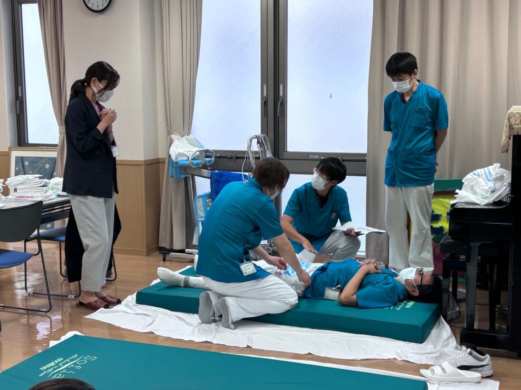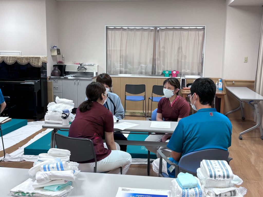 お互いの実技について確認し、どのようにすれば良いか振り返りや意見交換もします。