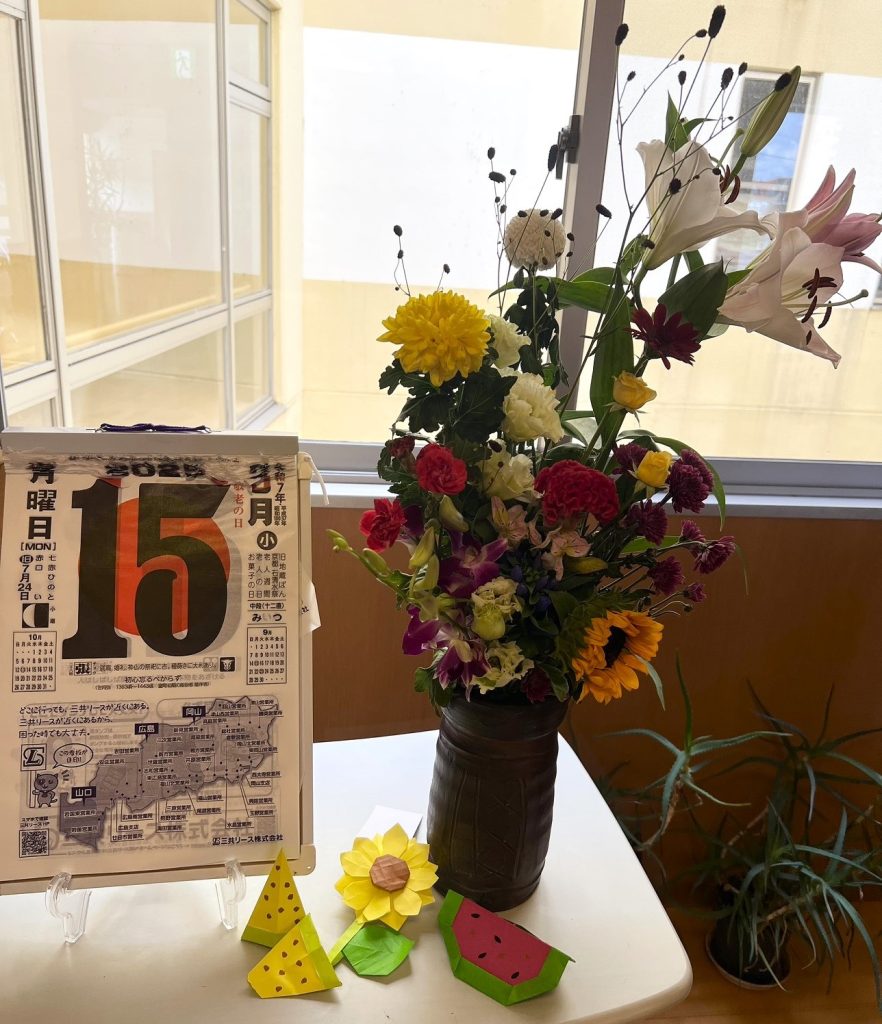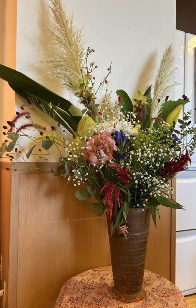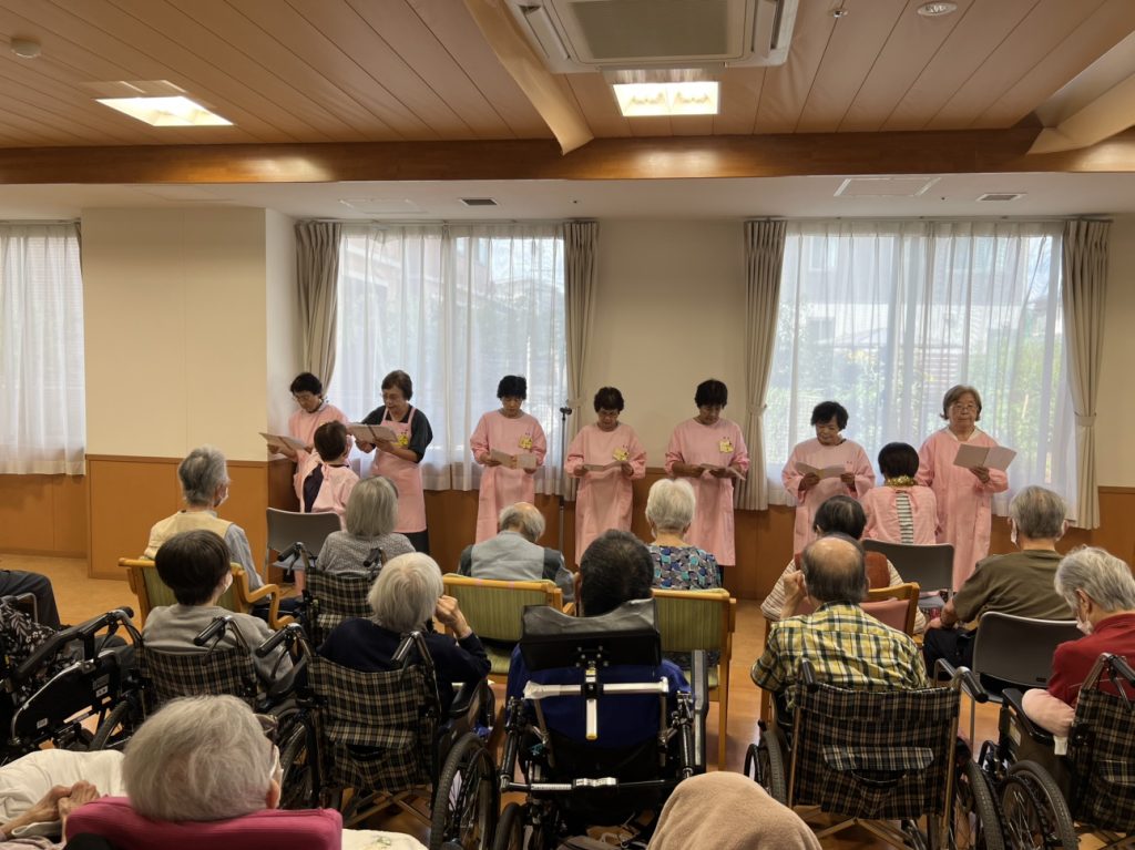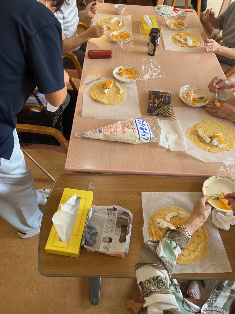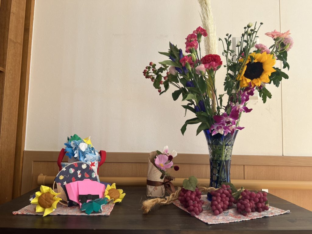 敬老の日 2025年10月06日 | 備中荘 心を込めたお弁当です。 蓋を開けた時に感動していただきたくて、味はもちろん見た目にもこだわって作っています。 加茂地区愛育委員のみなさまによるボランティア 朗読とマツケンサンバ♪みなさま熱心に聞いておられました。 ボランティアのみなさまありがとうございました。 デイケアのご利用者様とクレープづくり 丸く焼くのが皆さんお上手!!果物のカットもさすがの包丁さばきです。 トッピングをご自身で、お好きなように☆ おいしく召し上がられました。 敬老の日に気持ちを込めて、各ユニットをお花で飾りました 敬老の日についてはインスタにも載せています。 ぜひご覧ください。 シェアする