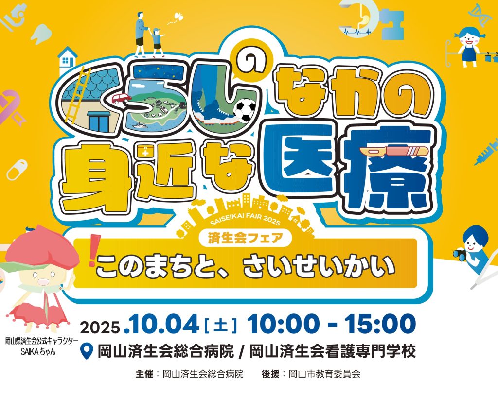 令和7年10月4日、岡山済生会総合病院・岡山済生会看護専門学校主催による「済生会フェア」が開催されました。前回令和5年に続き2回目の開催となります。