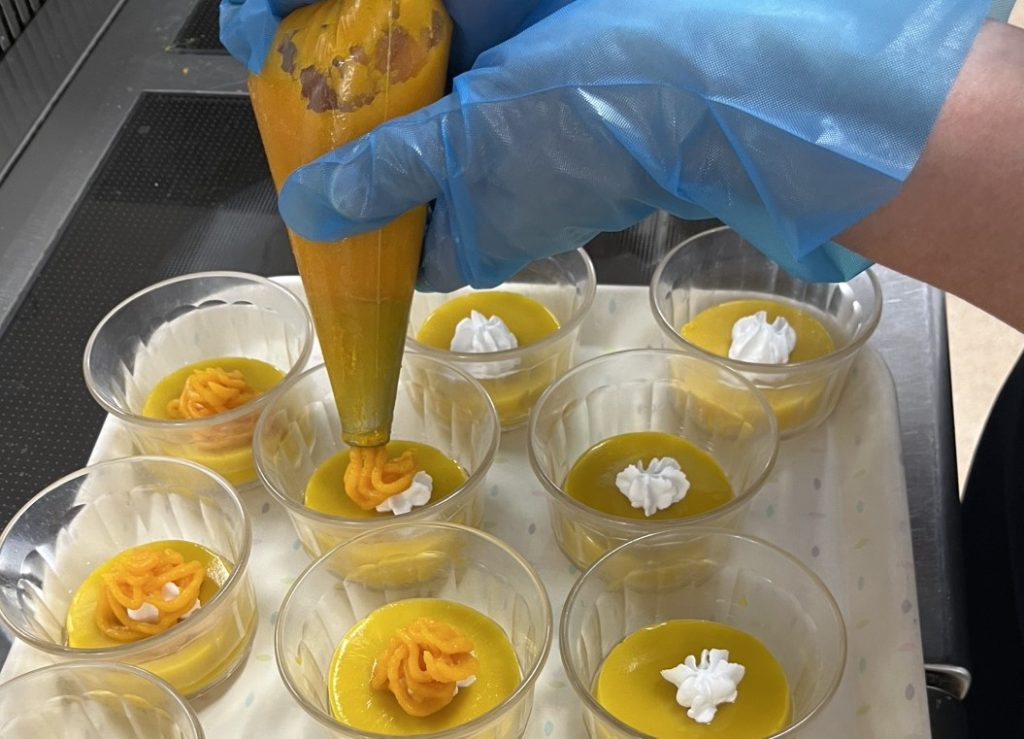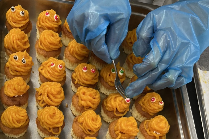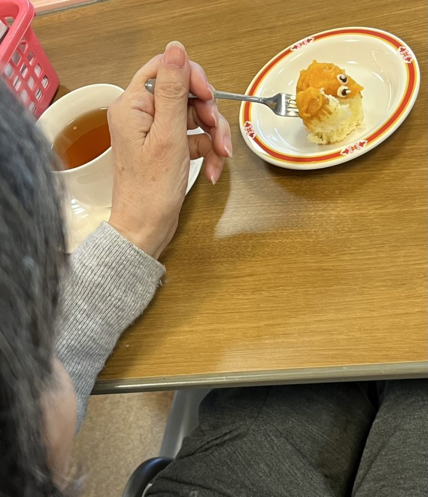 10月31日ハロウィンおやつ🎃で、”かぼちゃお化けのミニモンブラン”または”かぼちゃプリン”を食事形態に合わせて提供いたしました。