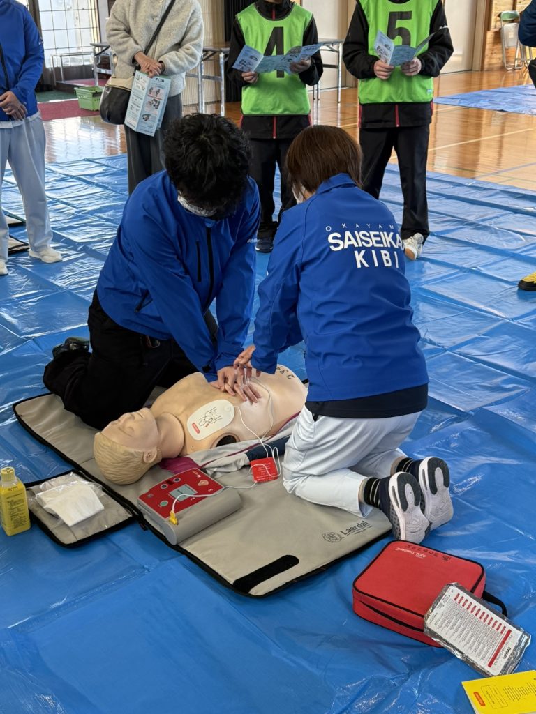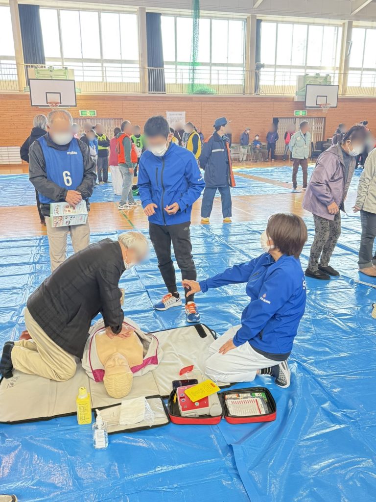 地域の方々に胸骨圧迫やAEDの体験をしていただきました。皆さん意欲的で熱心に学ばれ、さまざまな質問をいただき、とても関心があることがうかがえました。