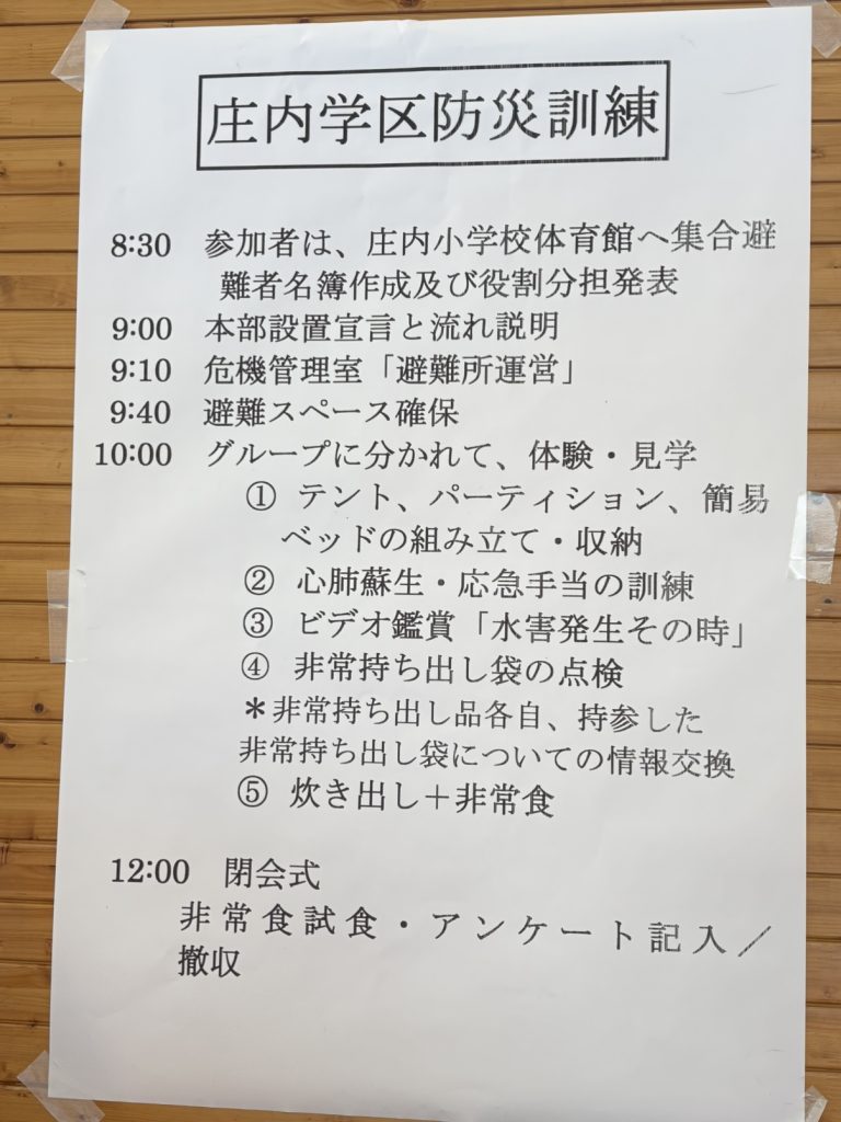 庄内学区防災キャンプに吉備病院と合同で備中荘も参加しました。吉備病院スタッフ4名と備中荘看護師2名でBLS(一次救命処置)のブースを担当しました。