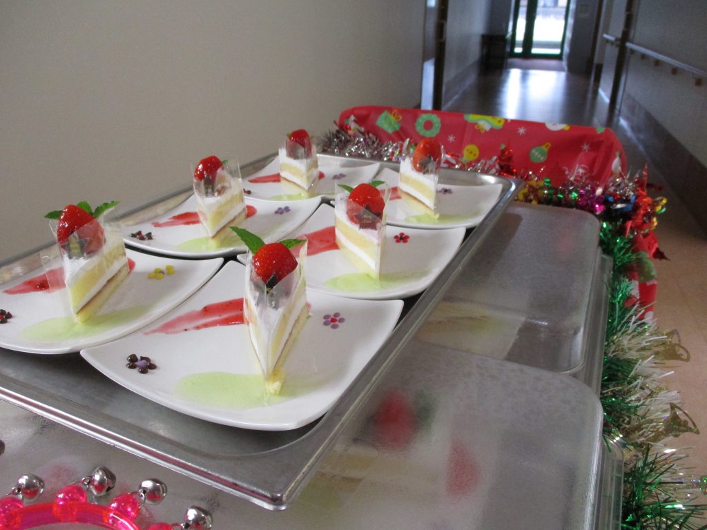 メッセージカードとともに、おやつにケーキをお配りしました。