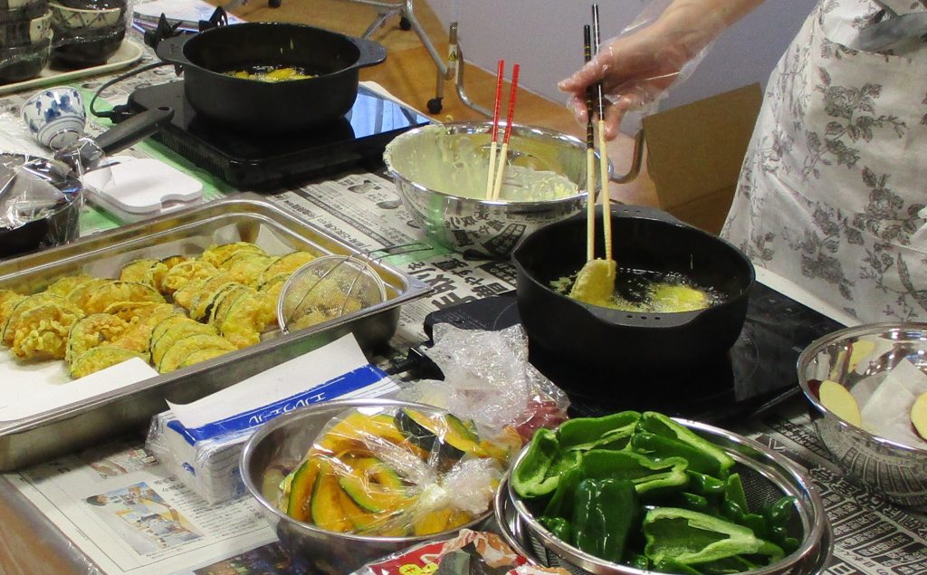 利用者様の目の前で天ぷらを揚げていきます。
